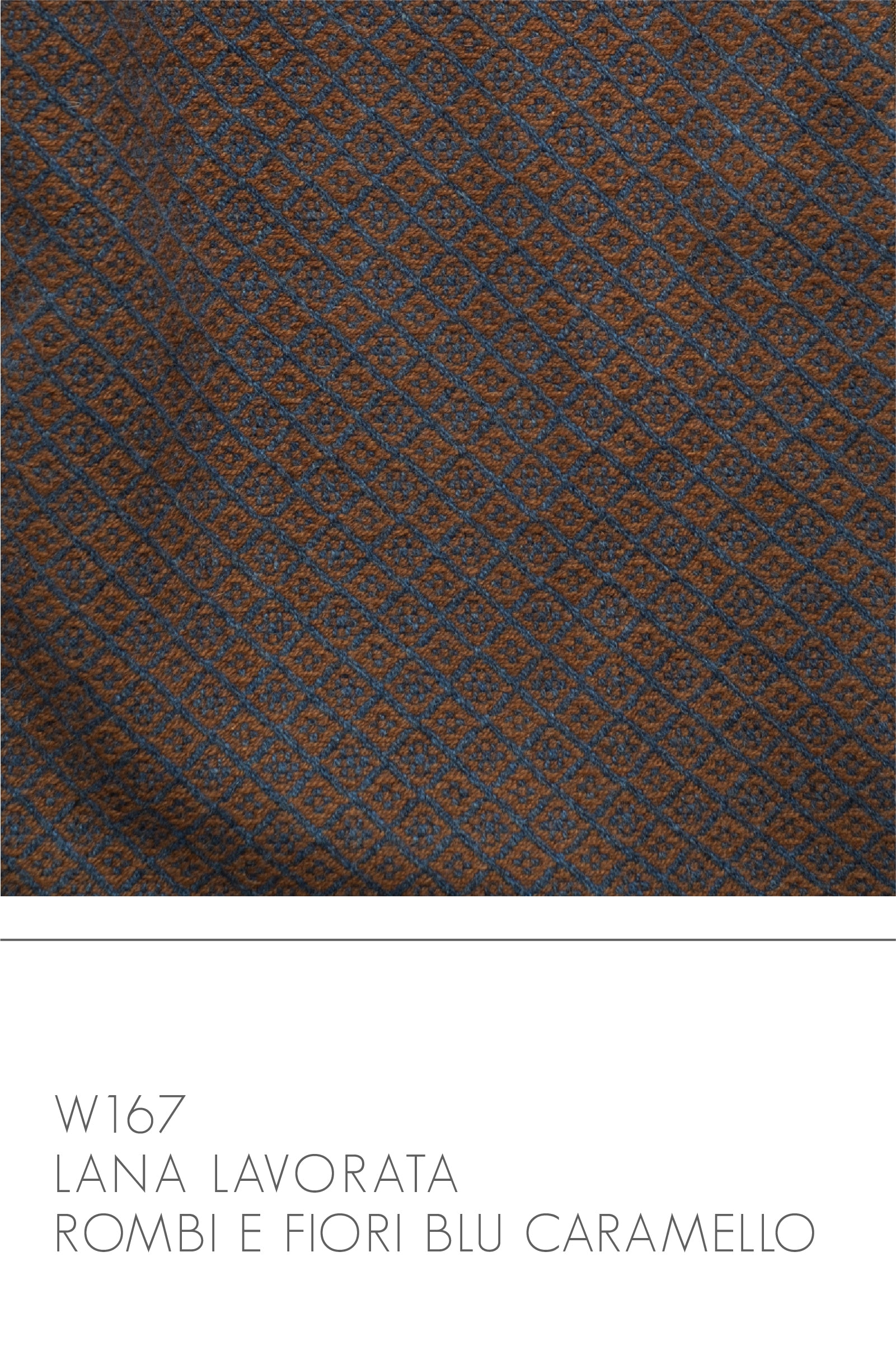 W167 - lana lavorata rombi e fiori blu/caramello