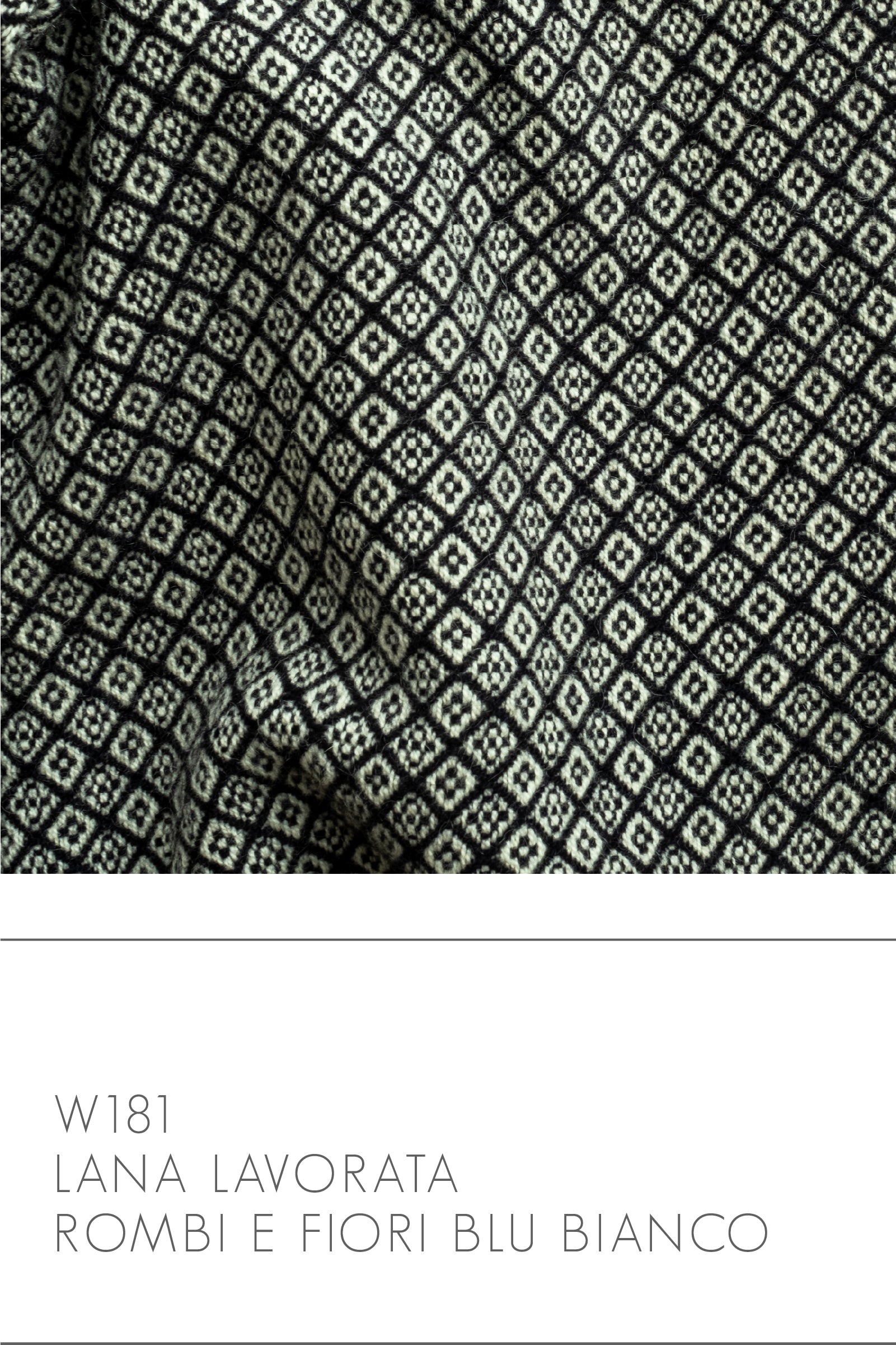 W181 - lana lavorata rombi e fiori blu/bianco