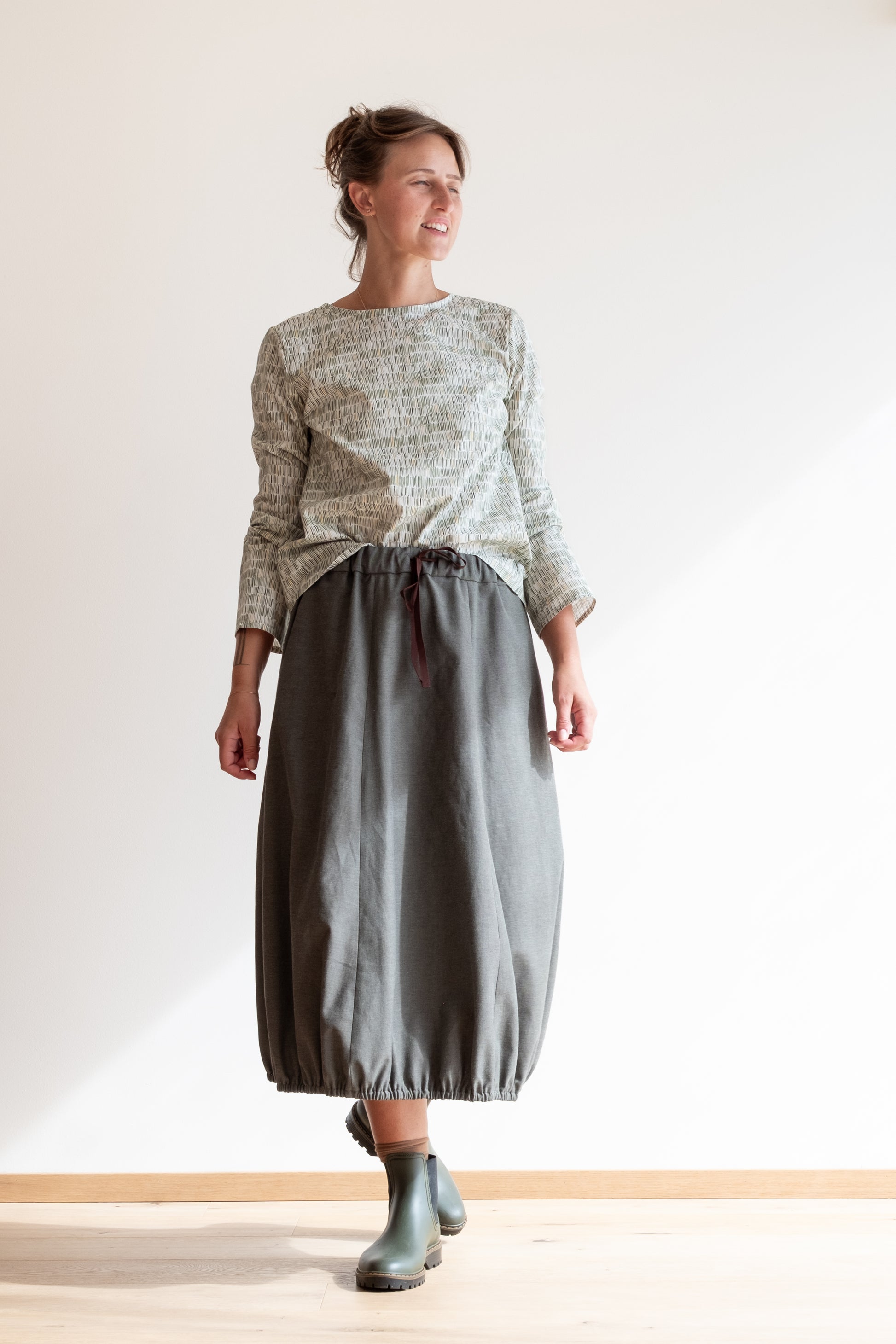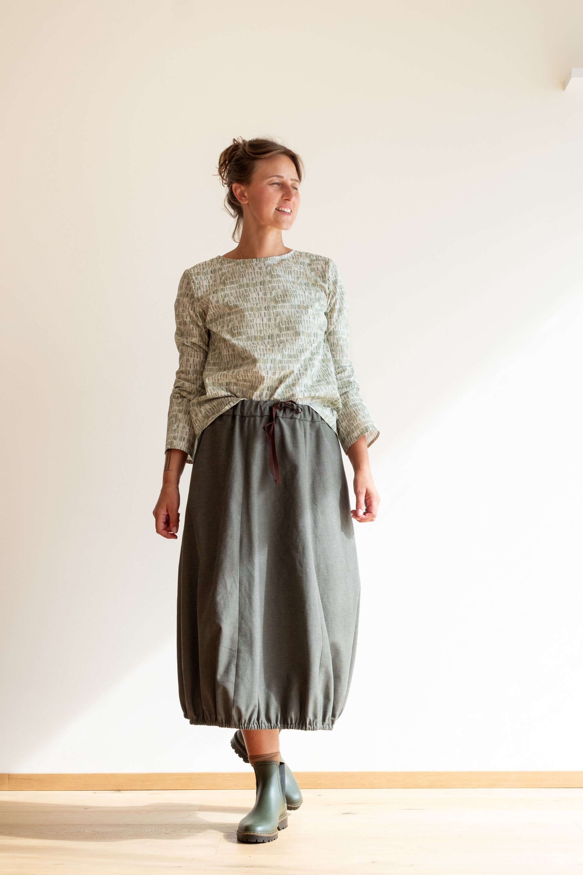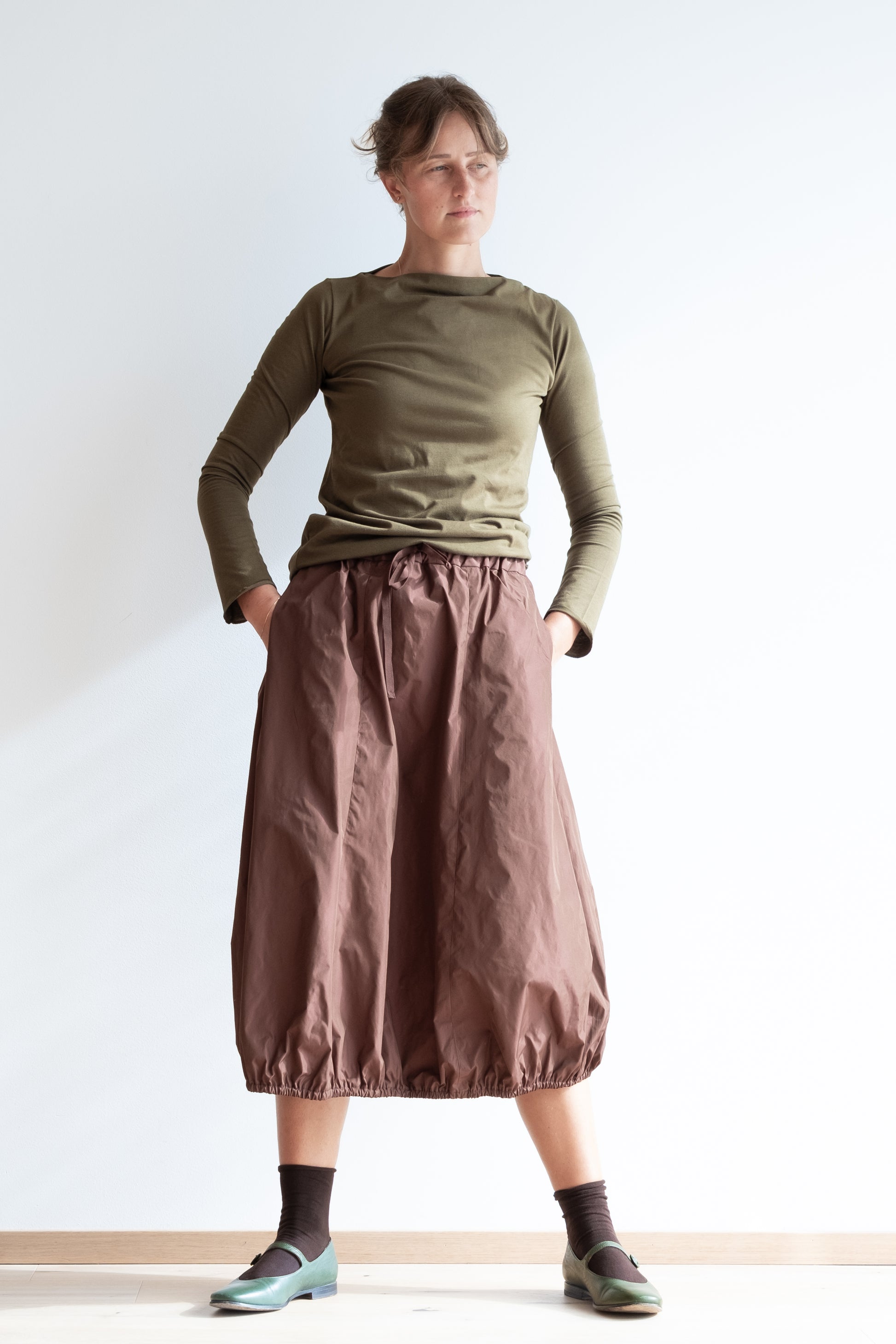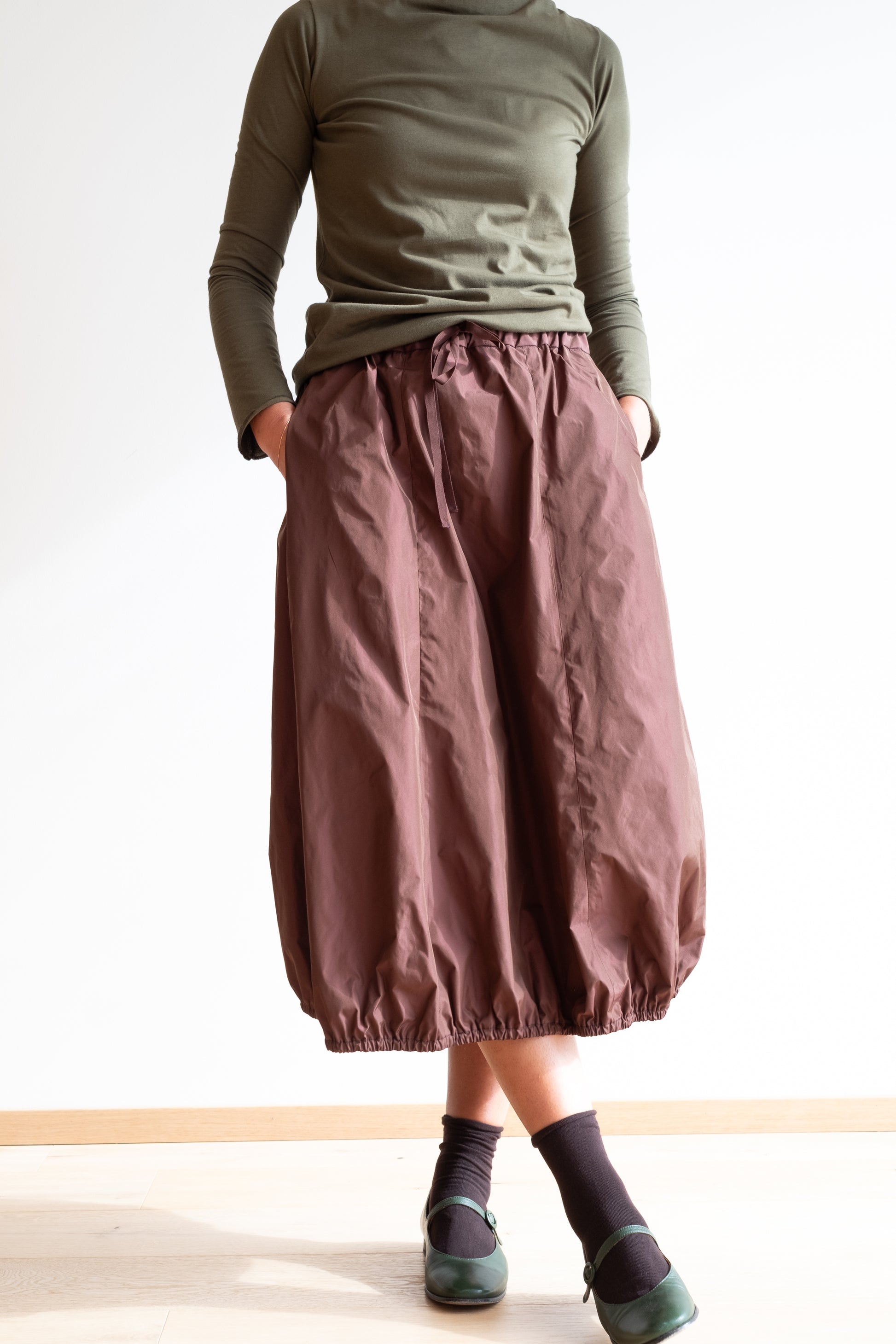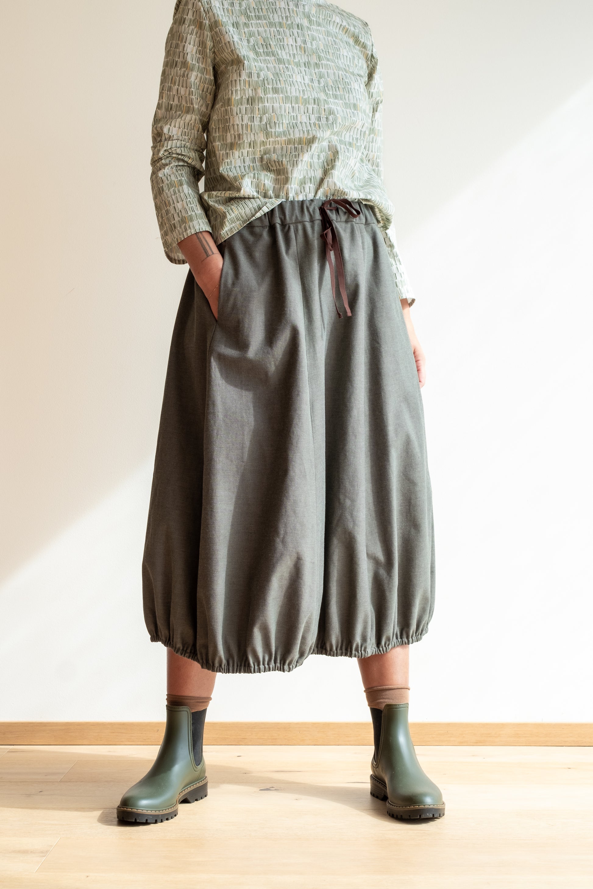 Modello arricciato con tasche, elastico in vita con coulisse, lunghezza sopra la caviglia (per lunghezze diverse indicare la lunghezza nel modulo d'ordine), orlo arricciato con elastico.