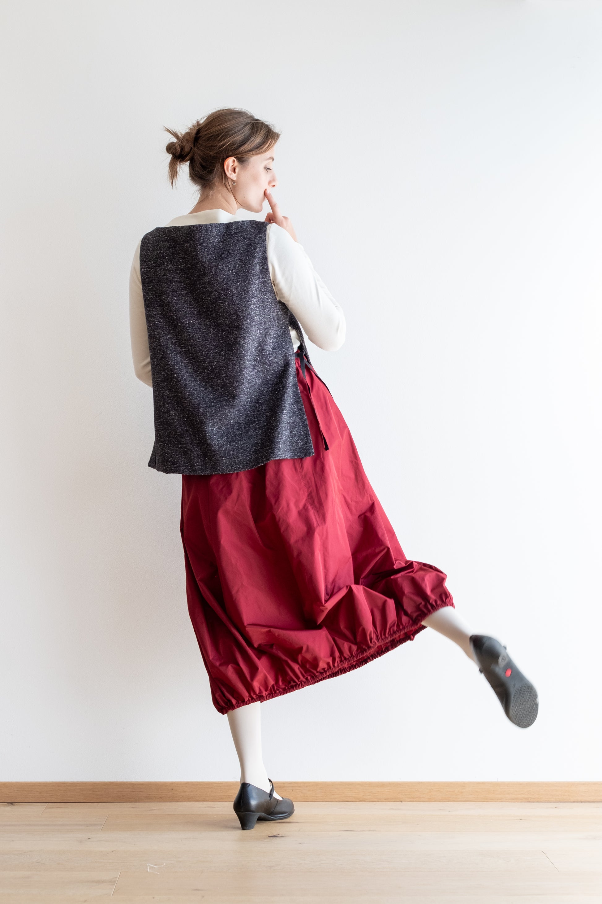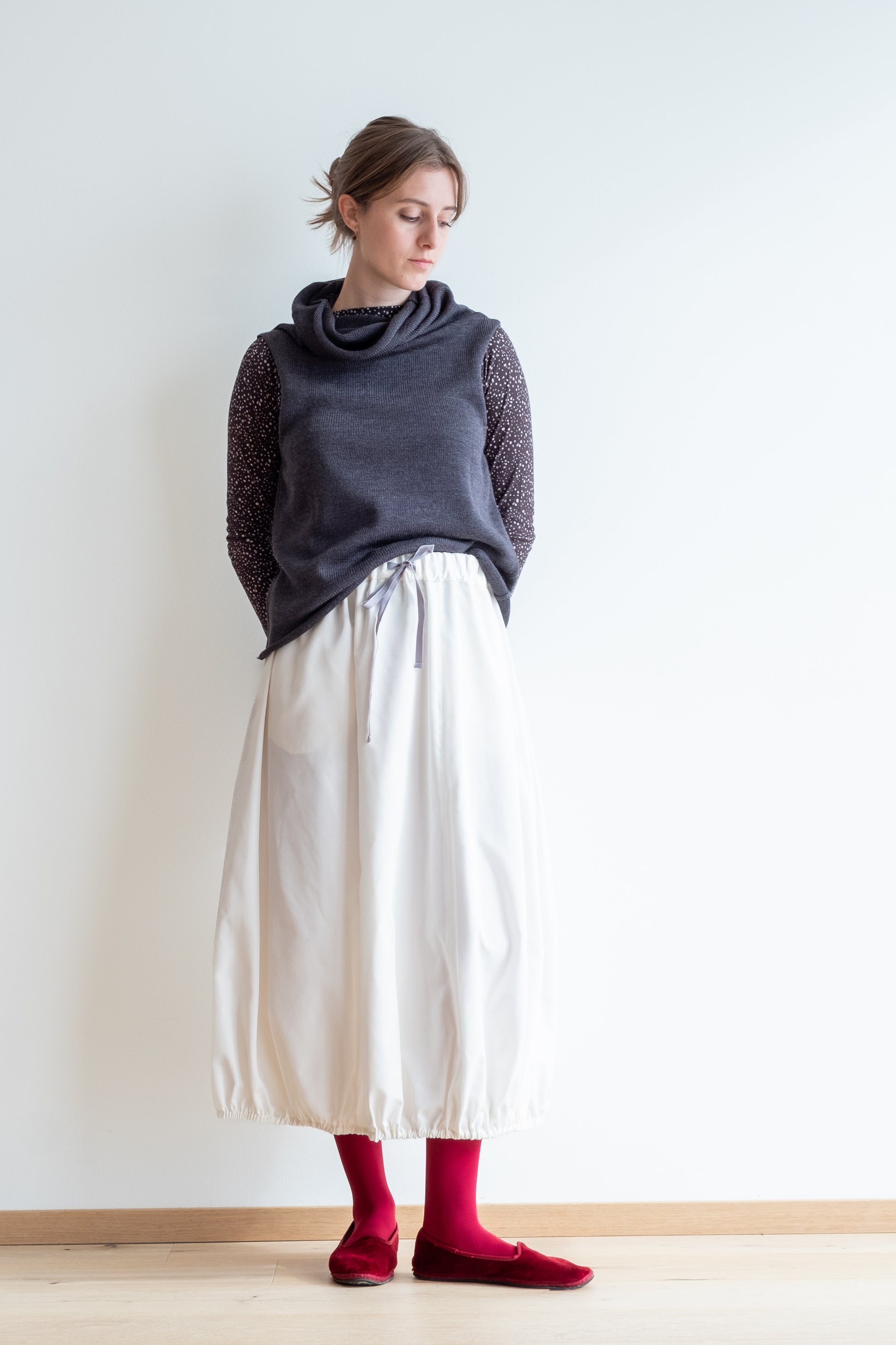Modello arricciato con tasche, elastico in vita con coulisse, lunghezza sopra la caviglia (per lunghezze diverse indicare la lunghezza nel modulo d'ordine), orlo arricciato con elastico.