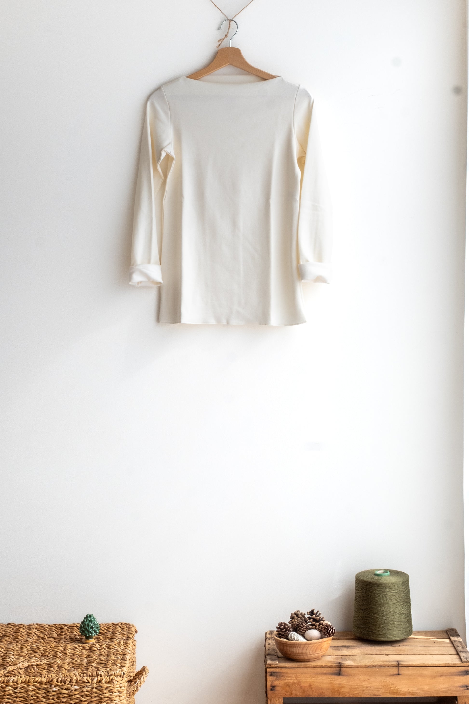 Maglia stretta con scollo a barchetta, manica lunga o a 3/4.